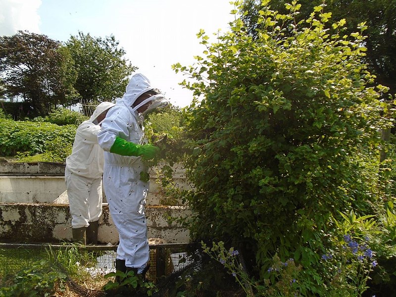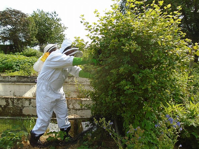 2019 Swarm collecting Findon Replace this with your text Steady as you go. Now for the big dunt. Collecting the last remnants. The question is - will they remain in the skep or abscond back to from where they came?