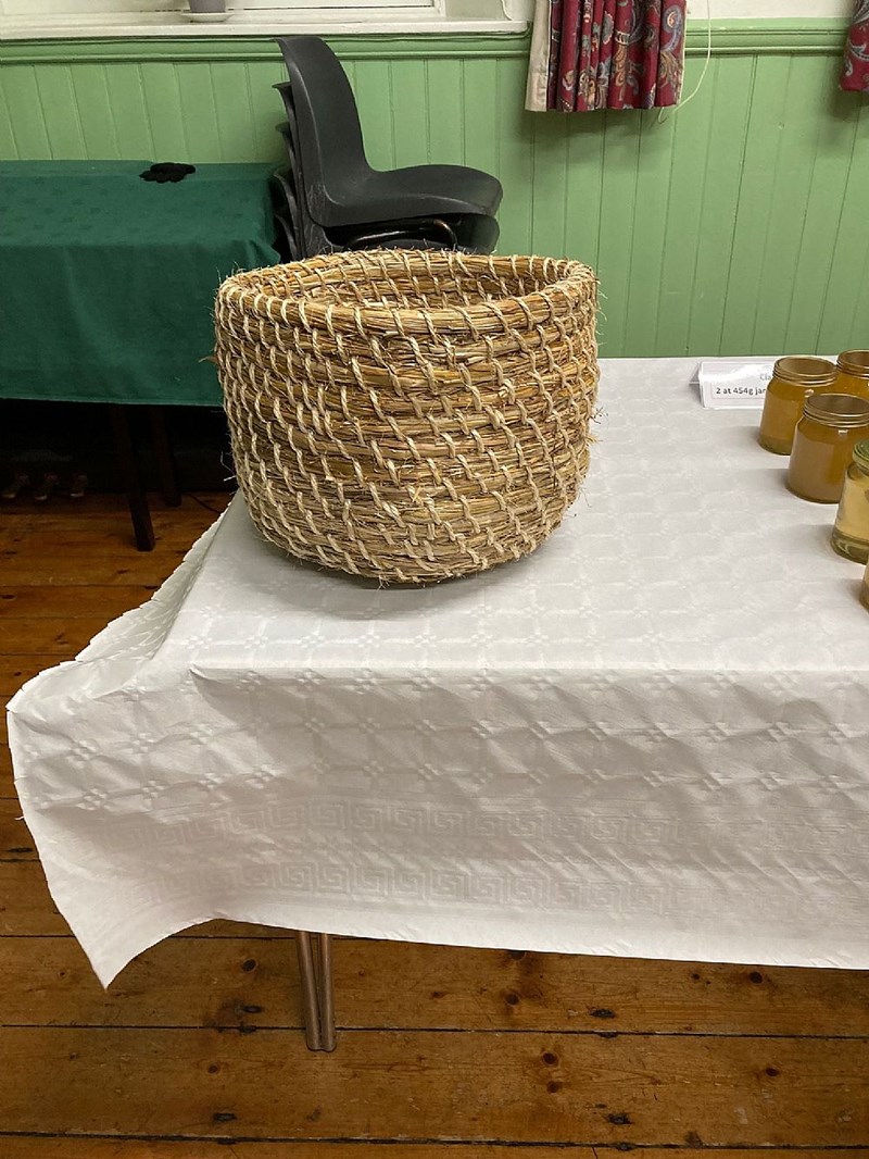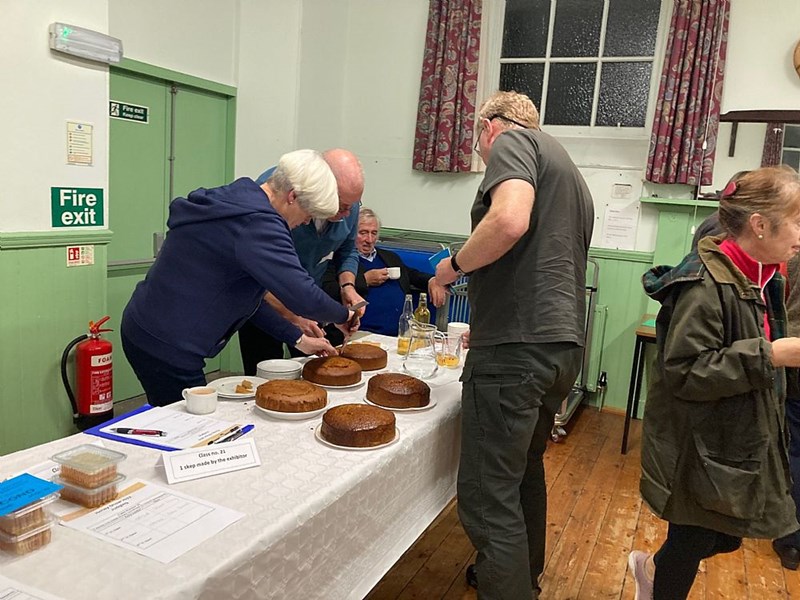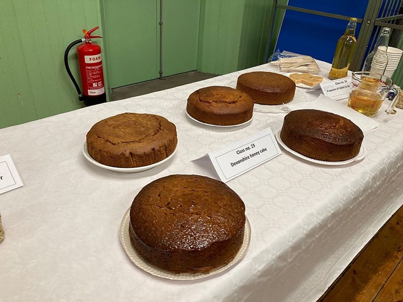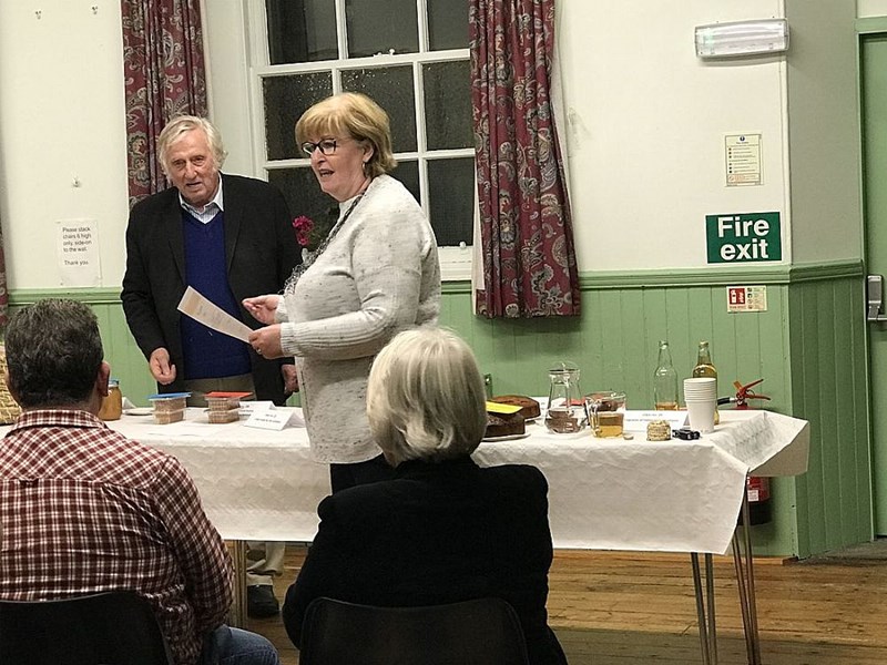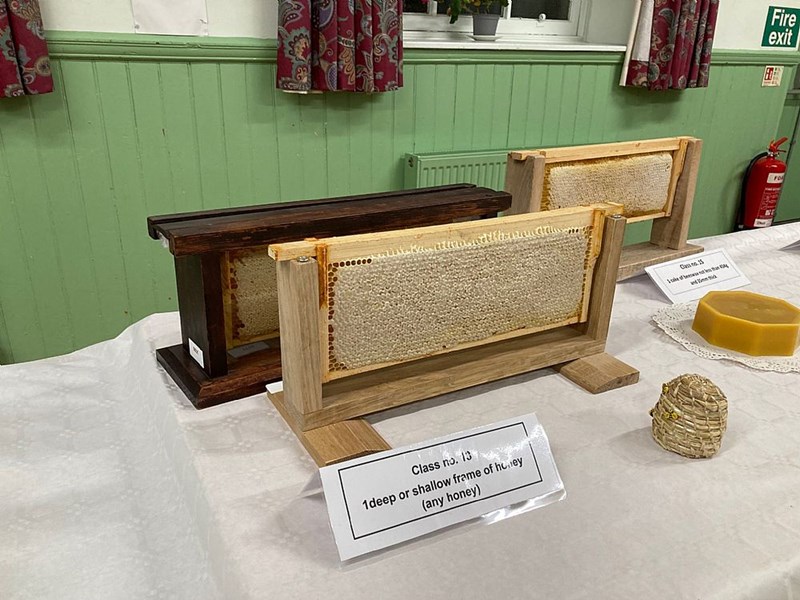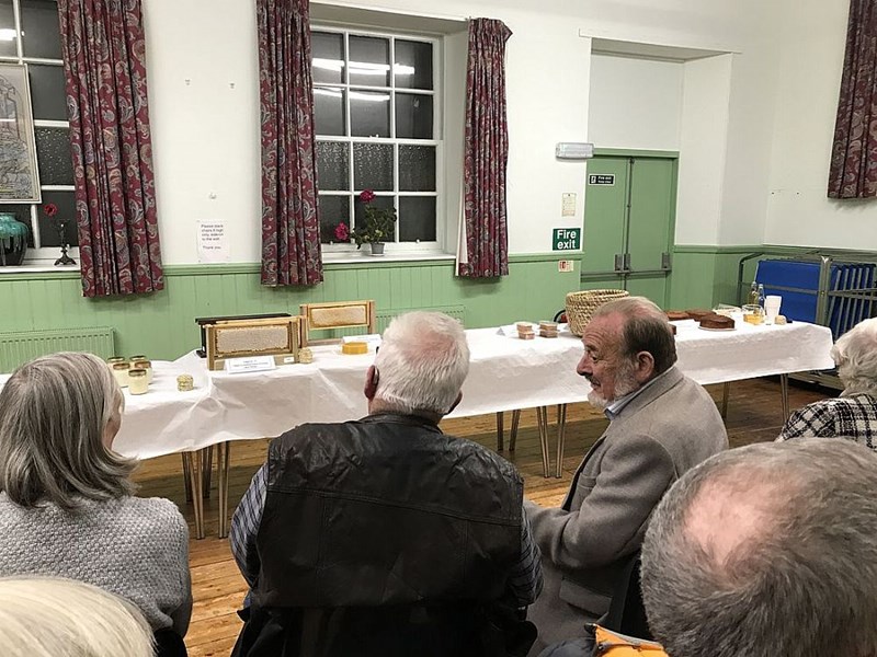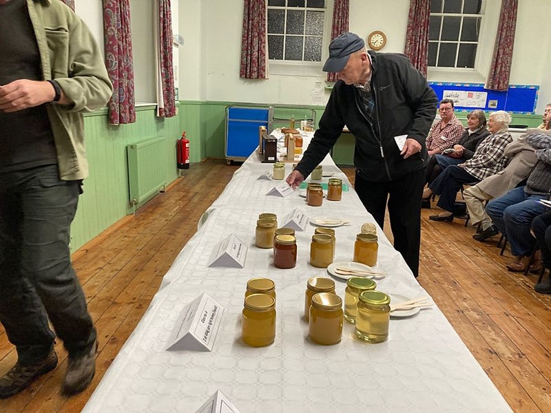 2022 Honey Show Willie Robson - our favourite judge. Jo Young receiving the Honey Cake shield Jo Young receiving the Novice Trophy Bill Cormack gained most points in Show and won Best in Show