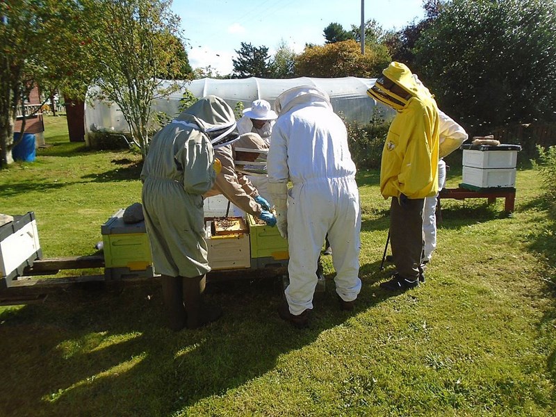 2022 September Fairfield Apiary The "snapper" got snapped! Now to go and cool down. A discussion on the merits of various designs of hives and feeders. Shame about the wasps though! Our reward for paying attention.