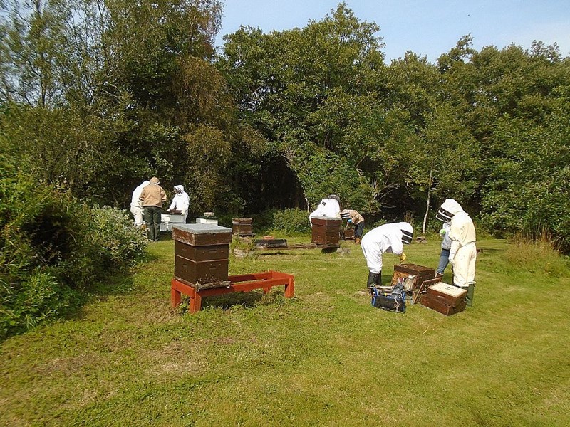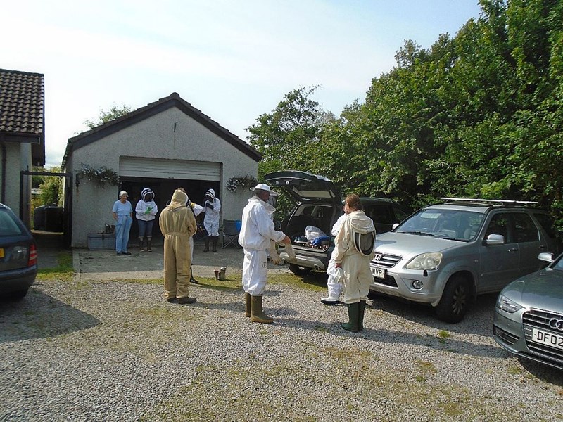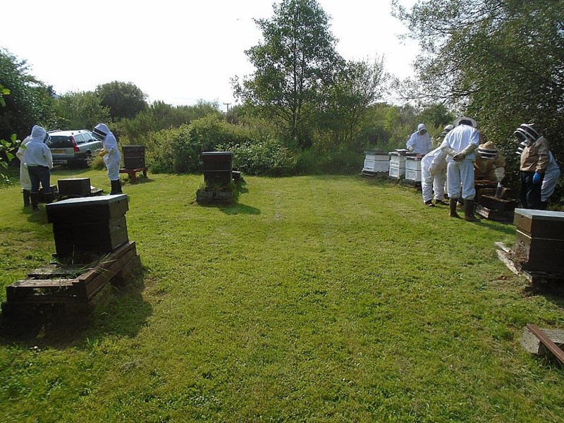 August 28th 2021 meeting Apart from it being too hot being dressed up these were near perfect conditions for examining bees. A shame that so many members couldn't take advantage of having three tutors available.