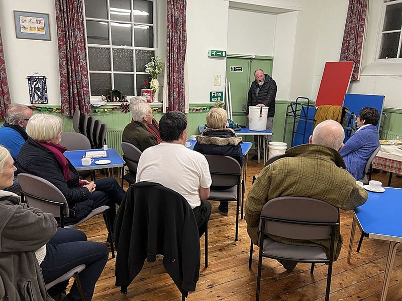 This meeting was set up as an opportunity to socialise in the run up to the festive season with a Secret Santa, where the items were to be bee-related and surlpus to the donor's requirements, a Bee(tle) Drive followed by donated nibbles and mulled wine. The big bonus was a demonstartion by Bill Fraser of his interpretation of a home-made bee-swarm vacuum collecter. The pictures below tell some of the story.