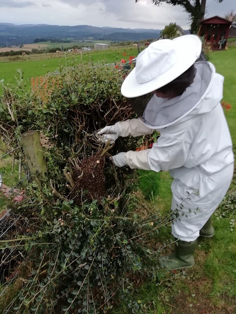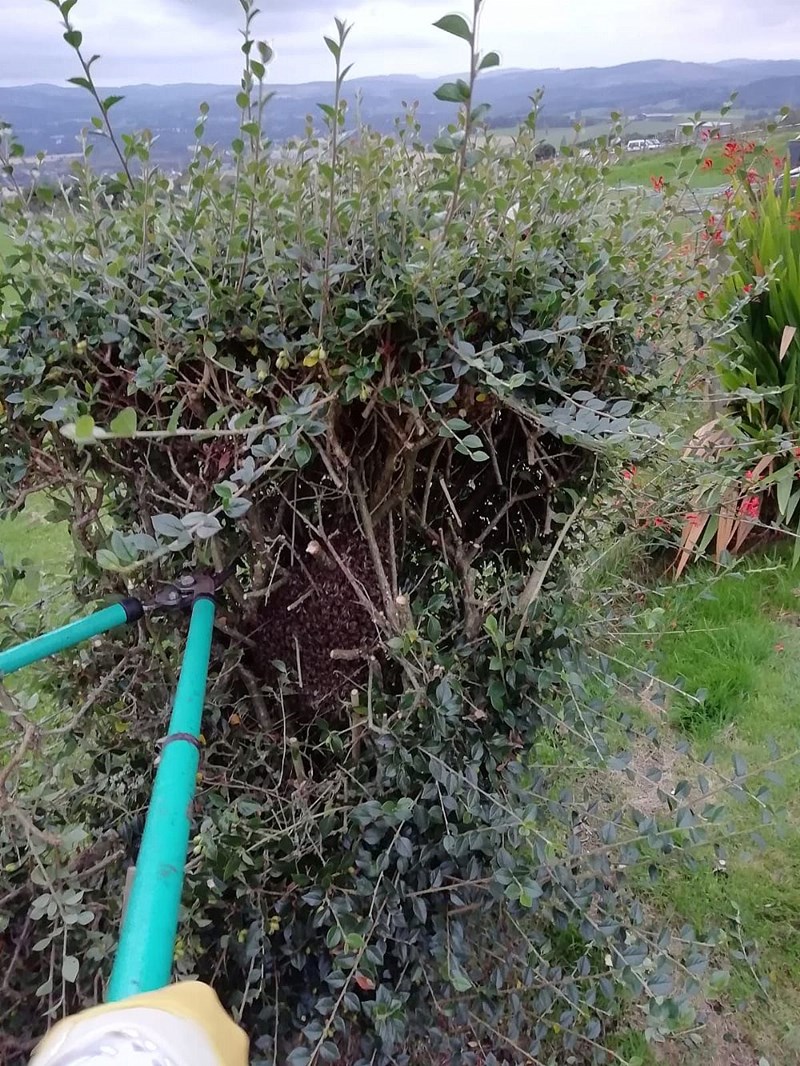 Problems with a late swarm Late September 2020 and this is discovered in a very awkward position! Good job it wasn't a specimen shrub. So, where do we go from here? Answers on a postcard!